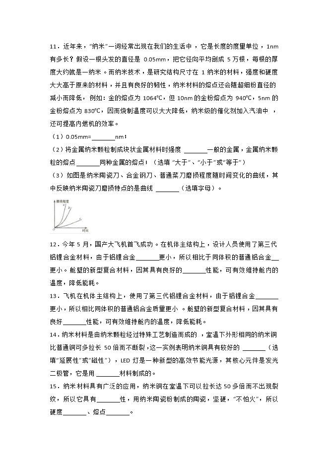6.2018年我国将进行40余次航天发射,所有的航天器外壳要求轻巧、耐高温。航天器外壳材料应具有的物理属性是( )