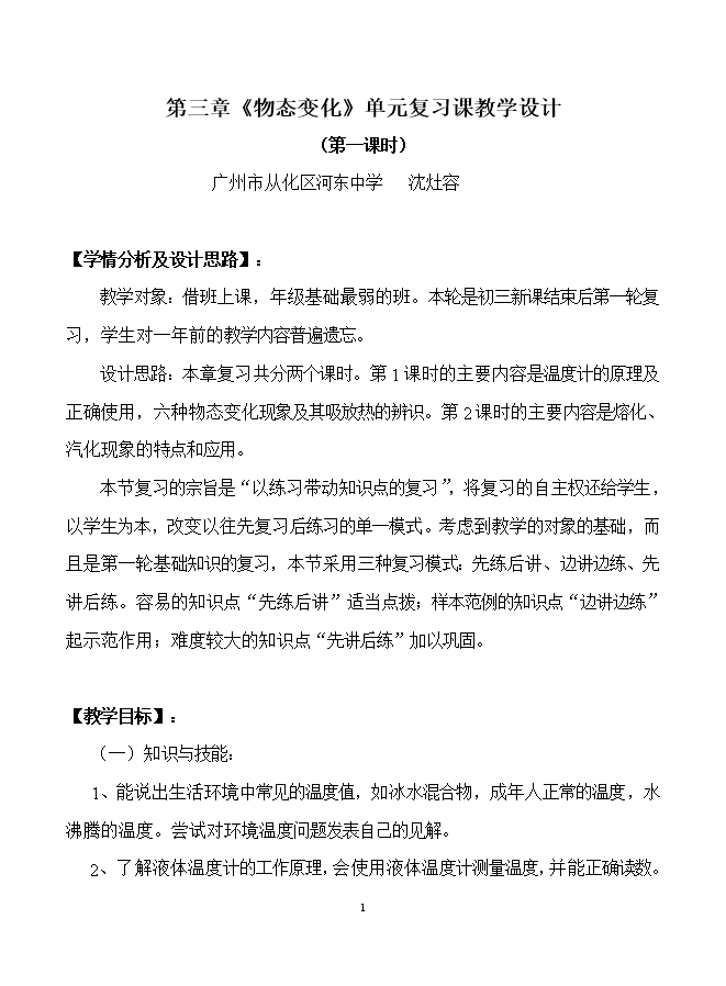 人教版:《第三章 物态变化》复习课ppt+教学设计