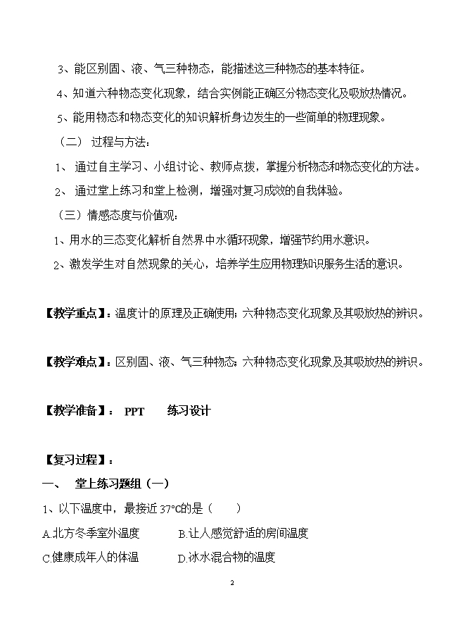 - 347安徽省线上教育资源:初中物理人教版八年级《第三章 物态变化 复习课》示范课视频(程良春)