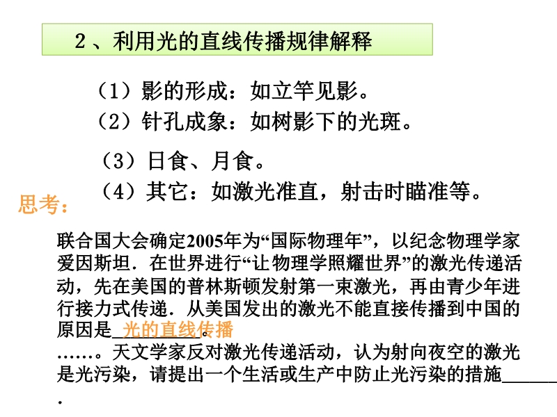 - 619安徽省线上教育资源:初中物理人教版八年级《第四章 光现象 复习课》示范课视频(张艳)
