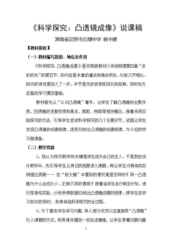 【内容简介】沪科版《4.5科学探究:凸透镜成像》PPT说课课件+说课稿,课件32张幻灯片。课件主要讲述了本节教材内容要点、教材的地位和作用、教学目标、教学的重点与难点、教学方法及学法,详细设计了本节的教学程序。