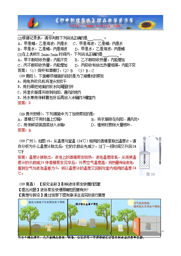 (09广州)24.用图22的实验装置探究烧杯内的某种物质熔化时温度的变化规律(烧杯内物质在相同时间内吸收的热量相同)