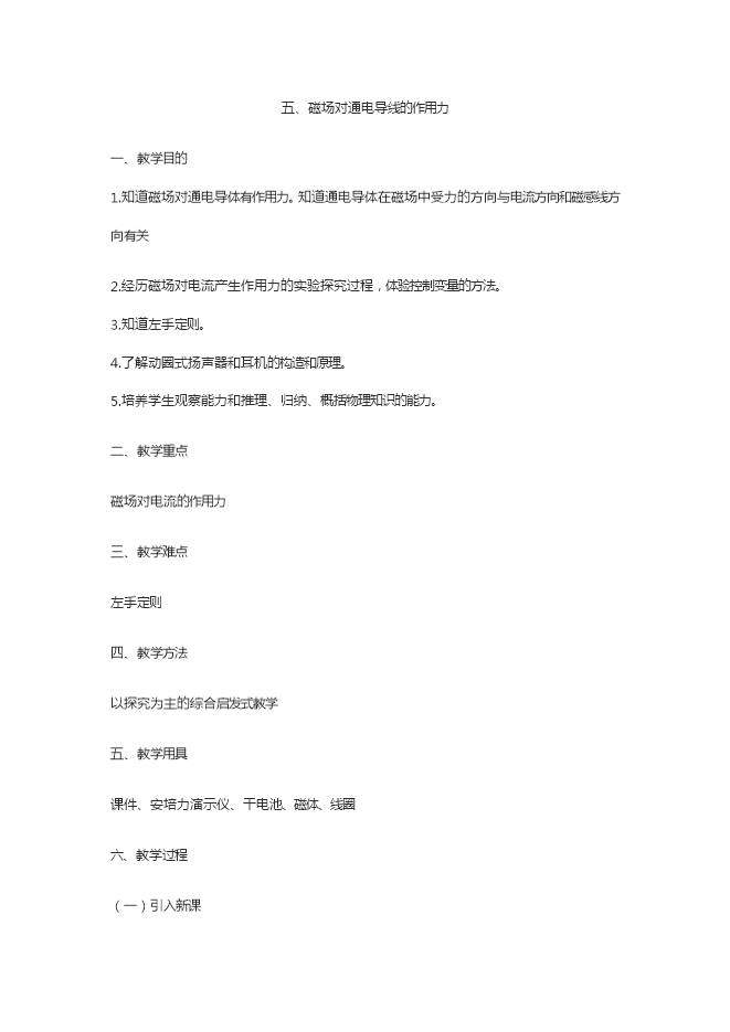 北师大版《14.5磁场对电流的作用力》ppt课件+教学设计(高唐中校)