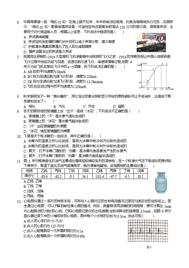 - 1162湖南省张家界市桑植县2018-2019学年八年级上学期期中考试物理试题及答案