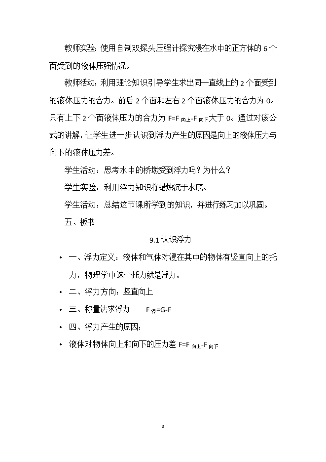 - 3269.1 认识浮力--2024新沪科版物理八年级下学期科学素养新教学设计(附教学反思)