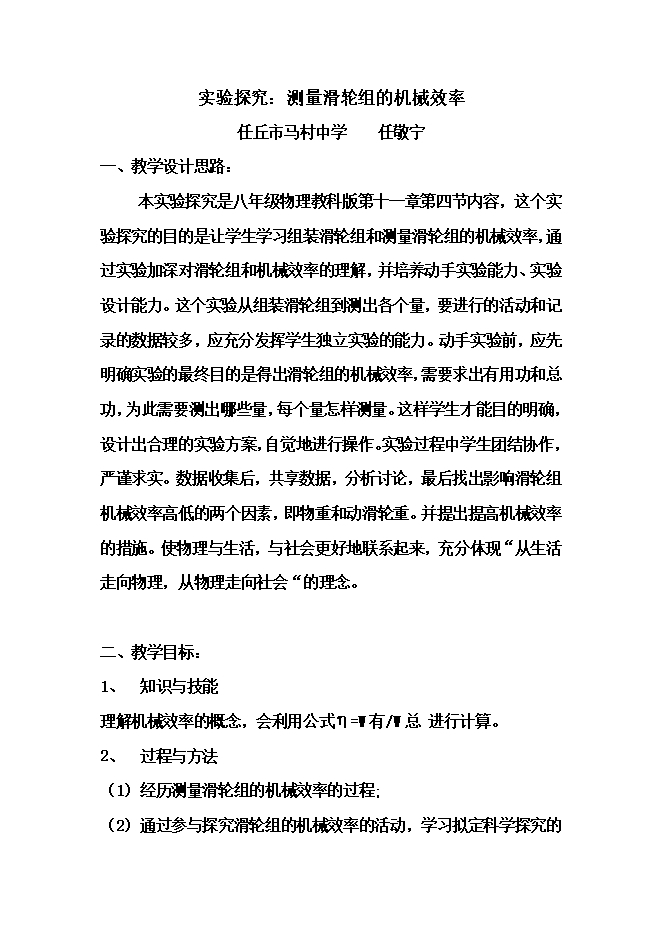 教科版实验课《11.4测量滑轮组的机械效率》ppt课件+教学设计