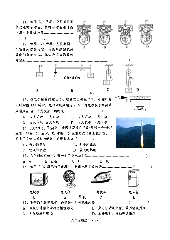 10. 人的眼睛相当于一个______,现在我市学生很多不注意用眼保健,以致近视眼越来越多,近视时就如图中的______,而矫正后则变为图中的______。
