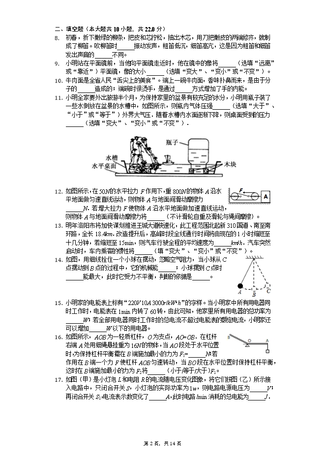 13. 明年洛阳市将加快谋划推进王城大道快速化,此工程范围北起新310国道、南至南环路,全长18.4km.改造提升后,高峰时段全线通行时间将由现在的1小时缩短至十几分钟,若缩短至15min,则汽车行驶全程的平均速度为______km/h.汽车突然启动时,车内乘客的惯性将______(填“变大”、“变小”或“不变”)。