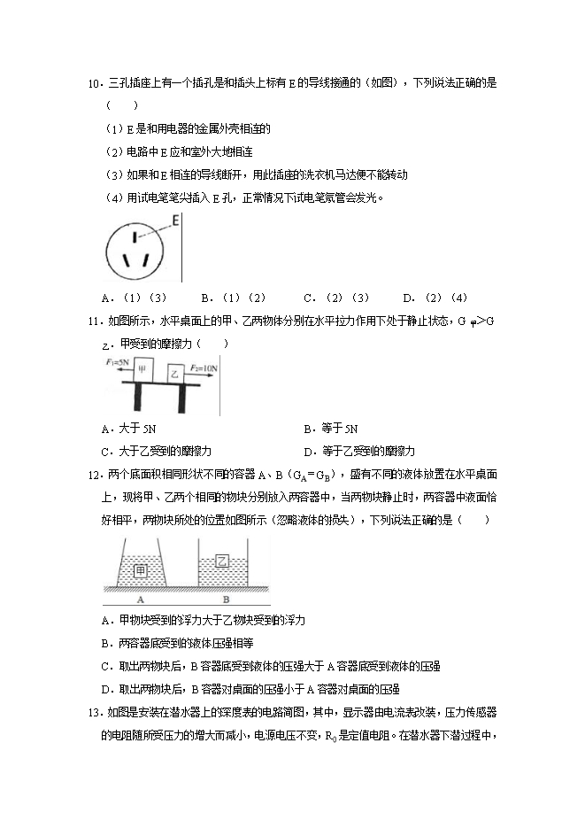 2019年河南省平顶山市中考物理一模试卷(解析版)