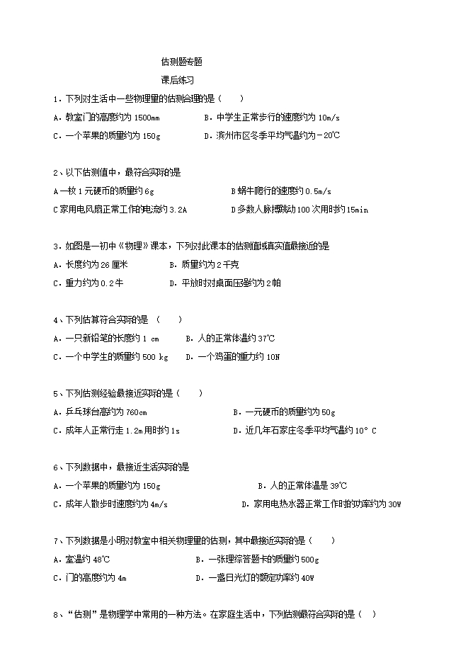 8.如图为某物体做直线运动时路程随时间变化的图象,由图象可知该物体