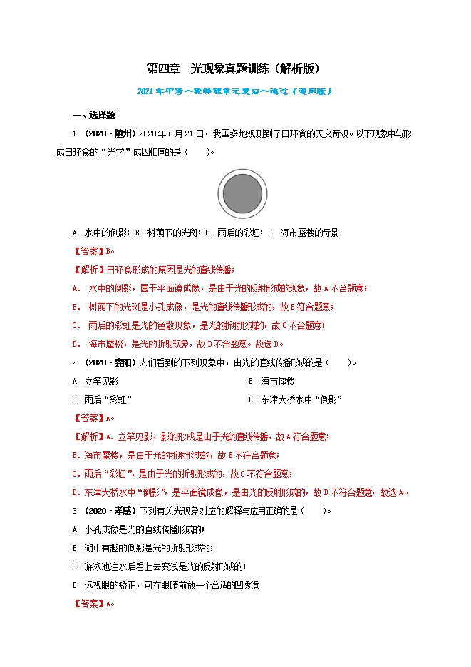 【内容简介】7.(2019秋•蓝田县期末)城市里高楼大厦的玻璃幕墙在强烈的阳光下会选成“光污染”,给周围的居民造成干扰,产生这种“光污染”的原因是( )A.玻璃幕墙会增强周围居民的采光B.玻璃幕墙对太阳光形成了漫反射C.玻璃幕墙可以增大周围居民的视野,对居民是有好处的D.玻璃幕墙对太阳光形成了镜面反射8.(2019秋•南山区期末)老师在黑板上的板书,有些座位上的同学看的清楚,而有些座位上的同学则看到一片亮光而看不清楚字,其原因是( )