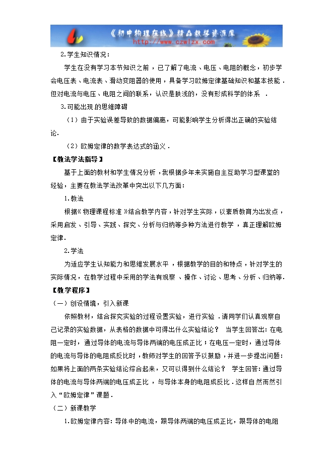 【内容简介】2019秋沪粤版九年级物理上册教学课件+教案:14.2探究欧姆定律