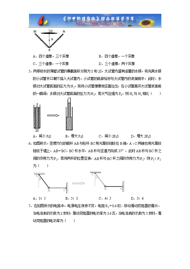 2019年湖南省湖南师大附中初中物理竞赛试卷(word解析版)