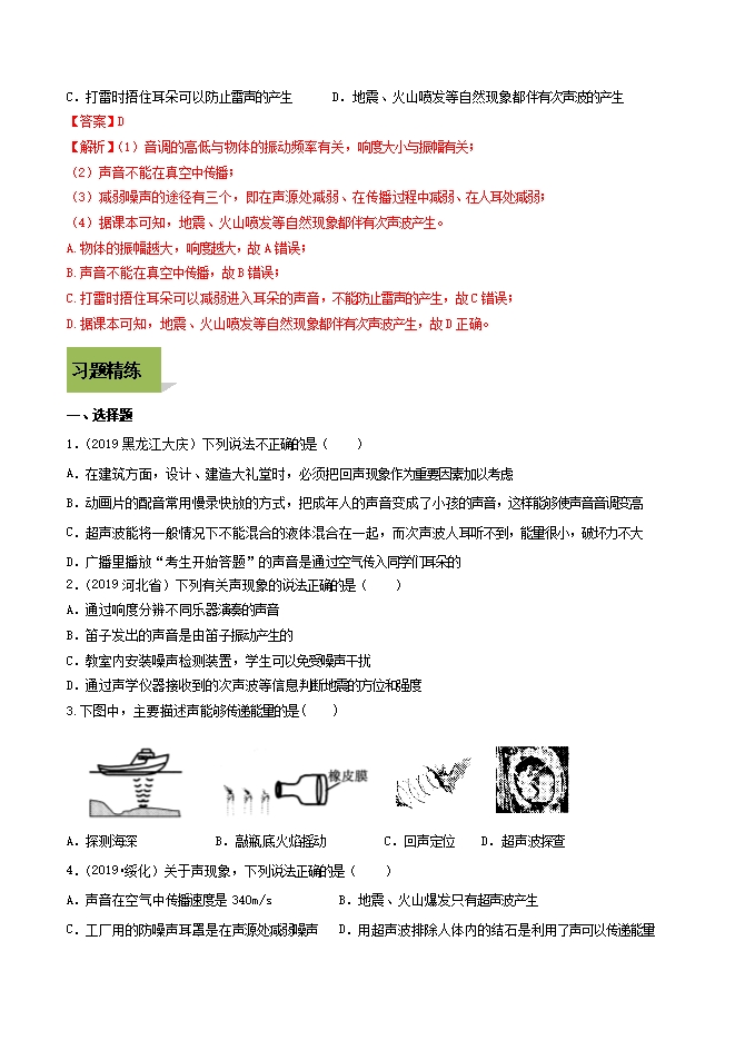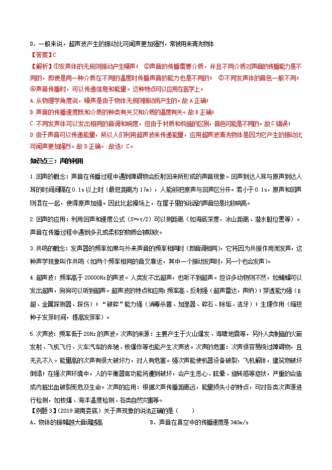 (人教版)2019-2020学年八年级上册物理精讲精练:专题2.3 声的利用