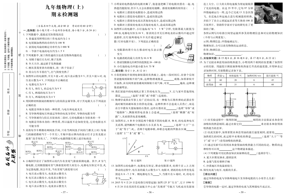 【内容简介】【名校名师大联盟】2019-2020学年九年级上册物理高效课堂导学案及测试卷(pdf版全套打包 人教版)