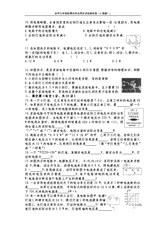 第18章 电功率---初中九年级物理知识点同步评估测试卷(人教版)