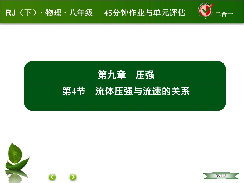- 3092021-2022学年春人教版八年级物理下册全套精品课课件:9.4 流体压强与流速的关系
