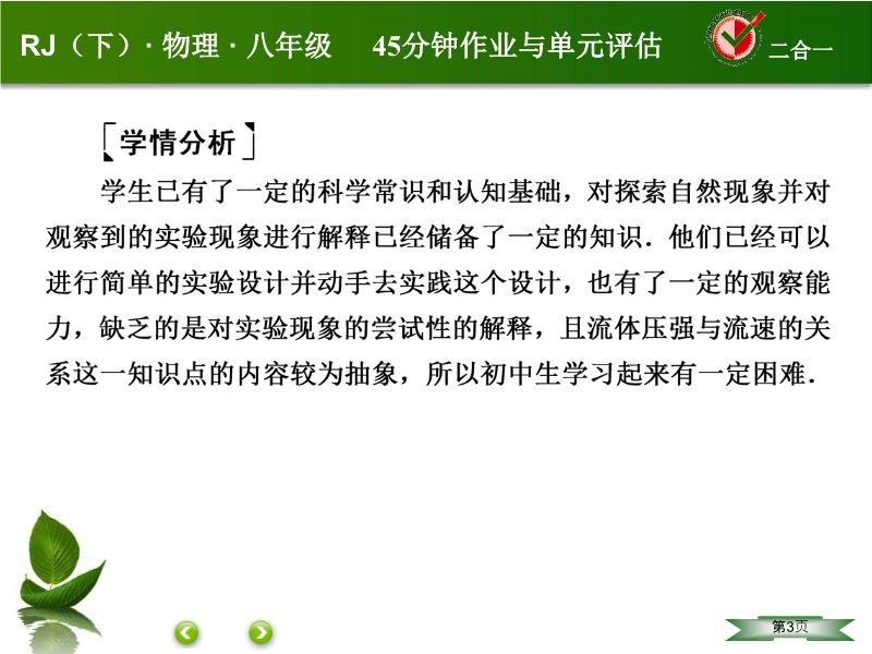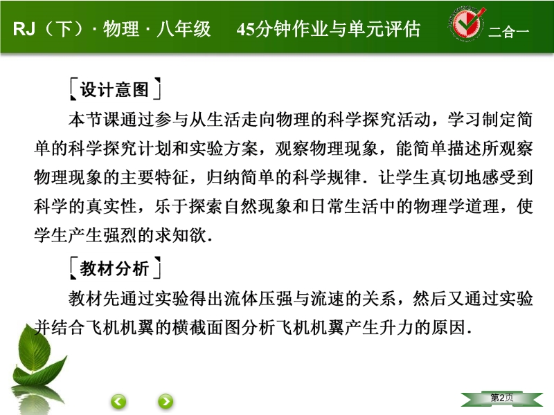 - 8332025春人教版八年级下册物理教学设计:9.5 流体压强与流速的关系(附教学反思)