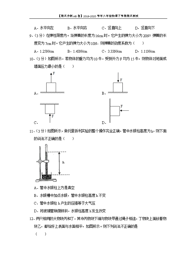 - 190【期末冲刺AB卷】2019-2020学年八年级物理下学期期末测试卷(上海浦东A卷)(解析版和原卷版)