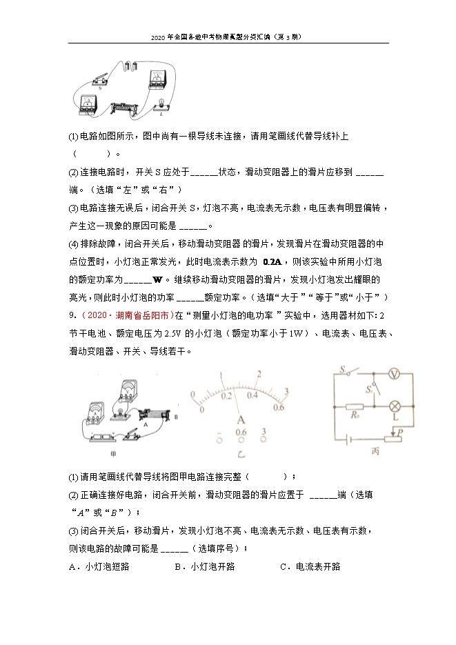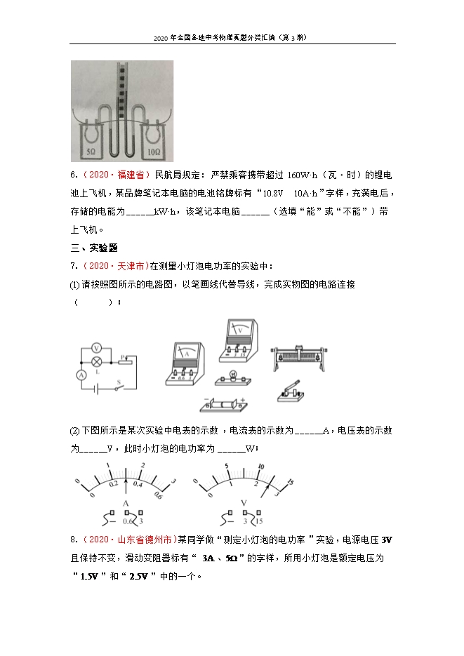 2020年全国各地中考物理真题分类汇编(第3期):专题20 电功率(原卷版和解析版)