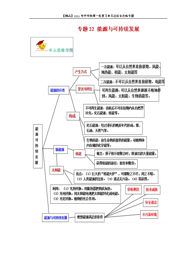 【精品】2021年中考物理一轮复习单元达标全攻略专题:22 能源与可持续发展(原稿版和解析版)
