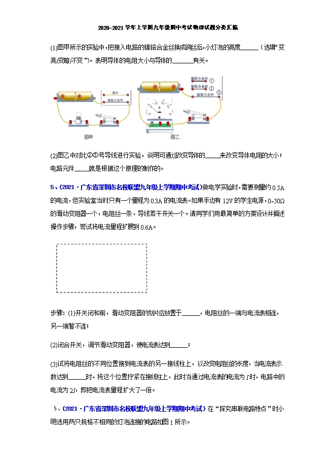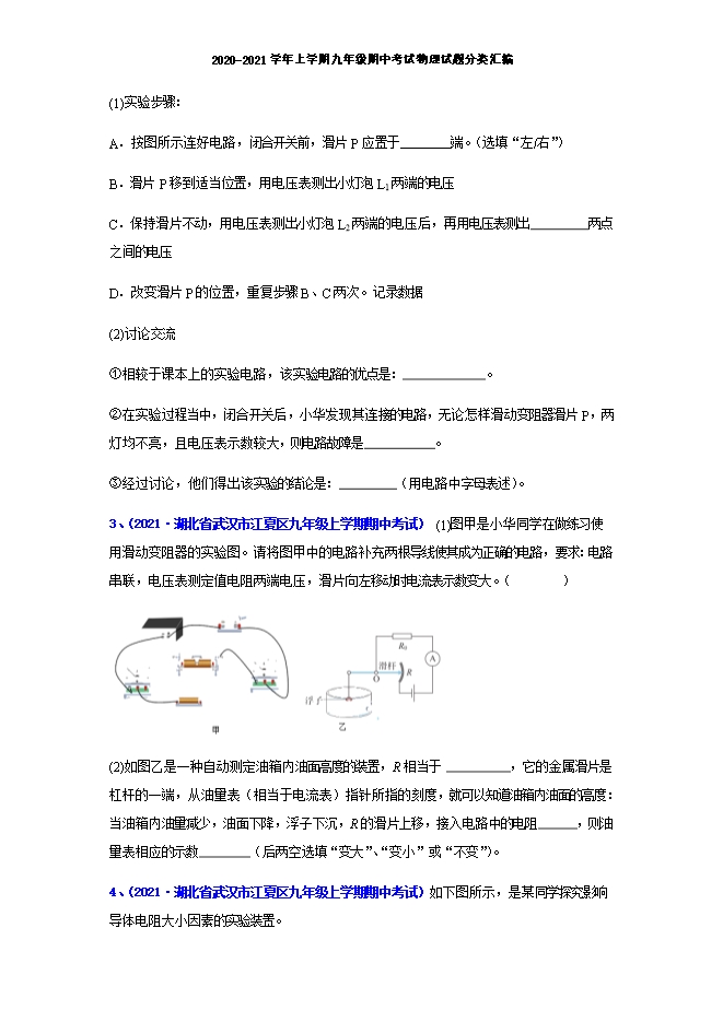- 308[精品]专题15 电学实验(一)--2020-2021学年上学期九年级期中物理试题分类汇编(原卷版和解析…