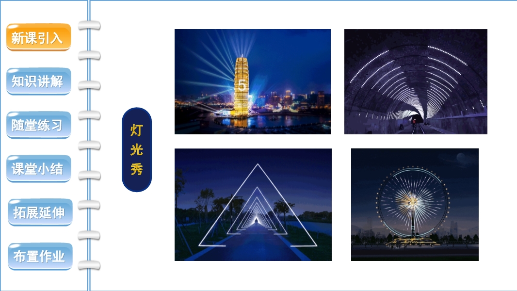 【内容简介】【演示ppt3-4】播放PPT,由各种灯光秀引到不同的灯【演示ppt5】讲解并提出问题(有条件的可组织学生做实验得出下页内容)【ppt6】能使两个小灯泡同时发光的电路有以下几种【ppt7-11】组织学生画出对应实物图的电路图【ppt12-16】总结引导出串并联板书:第3节 串联和并联一、串联电路:首尾依次相连的电路,只有1条电流路径,用电器相互干扰二、并联电路:首尾并列相连的电路,有2条或2条以上电流路径,用电器互不干扰pt17-22】引导学生得出串并联开关的作用板书:串联电路的开关控制所有用电器,并联电路干路开关控制所有用电器,支路开关仅控制该支路用电器。