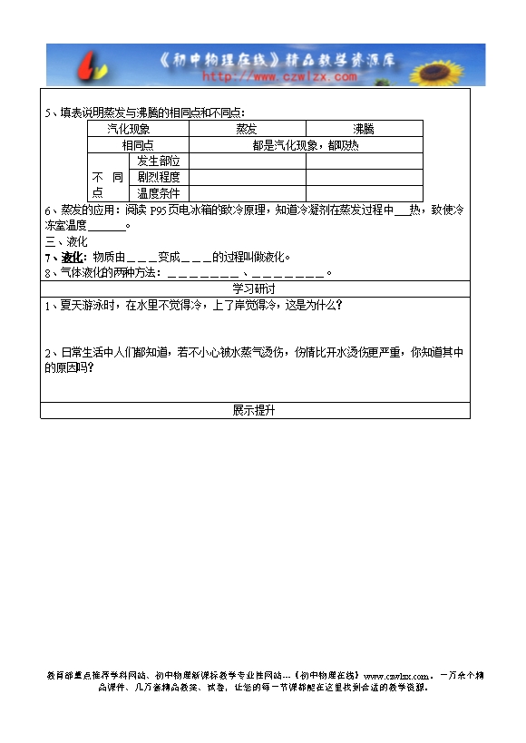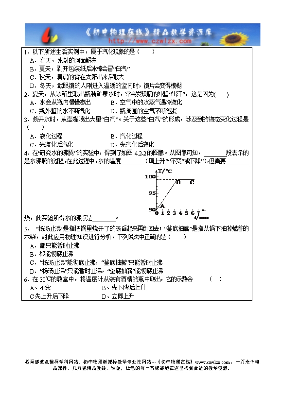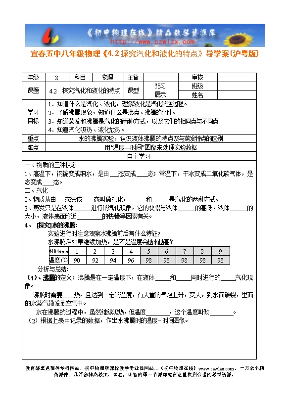 宜春五中八年级物理《4.2探究汽化和液化的特点》导学案(沪粤版