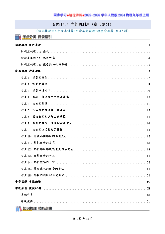 - 3242025-2026人教版物理九年级全一册培优卷:第十四章 内能的利用(附解析)