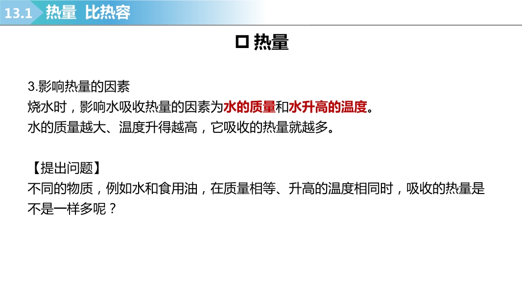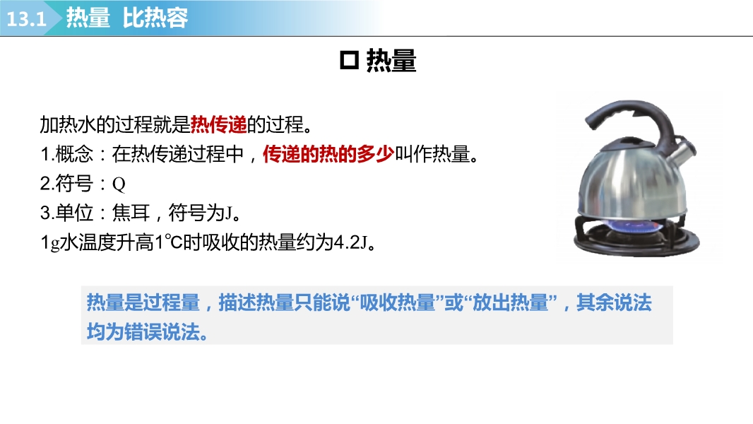 【内容简介】2025-2026学年新人教版九年级上学期物理课件:13.1热量 比热容