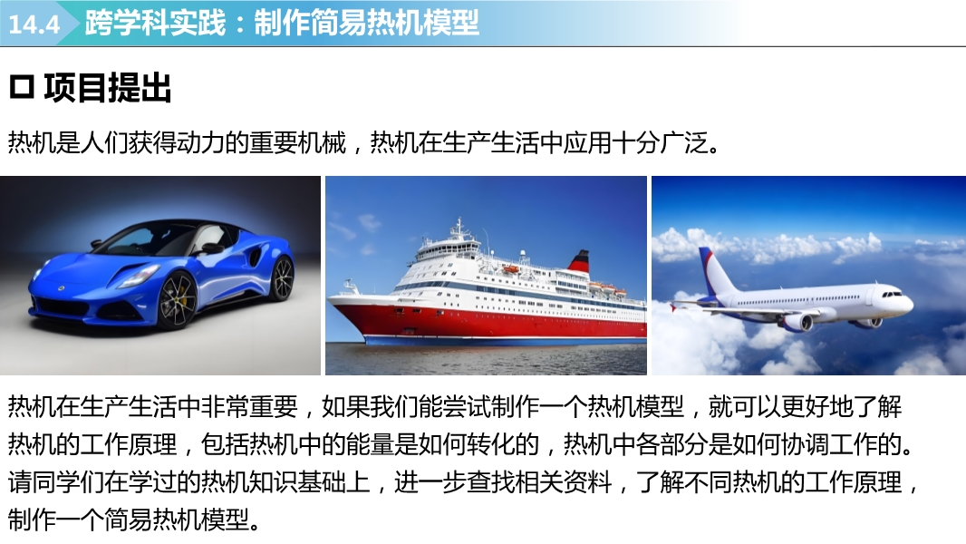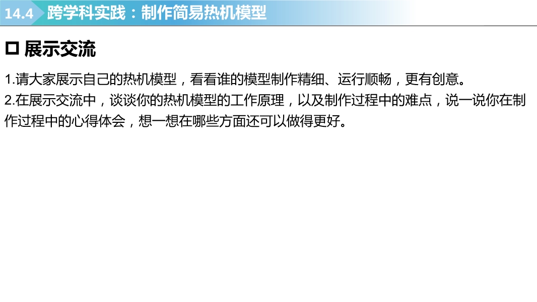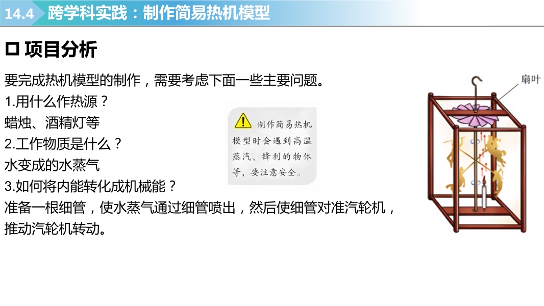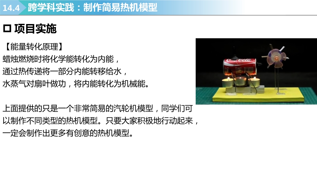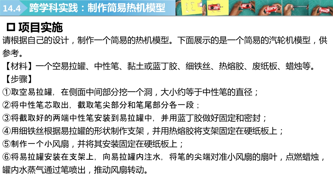 【内容简介】2025-2026学年新人教版九年级上学期物理课件:14.4跨学科实践:制作简易热机模型