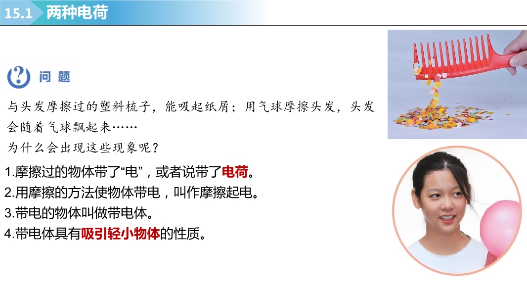 【内容简介】2025-2026学年新人教版九年级上学期物理课件:15.1两种电荷