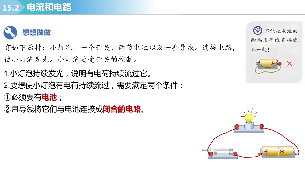 2025-2026学年新人教版九年级上学期物理课件:15.2电流和电路