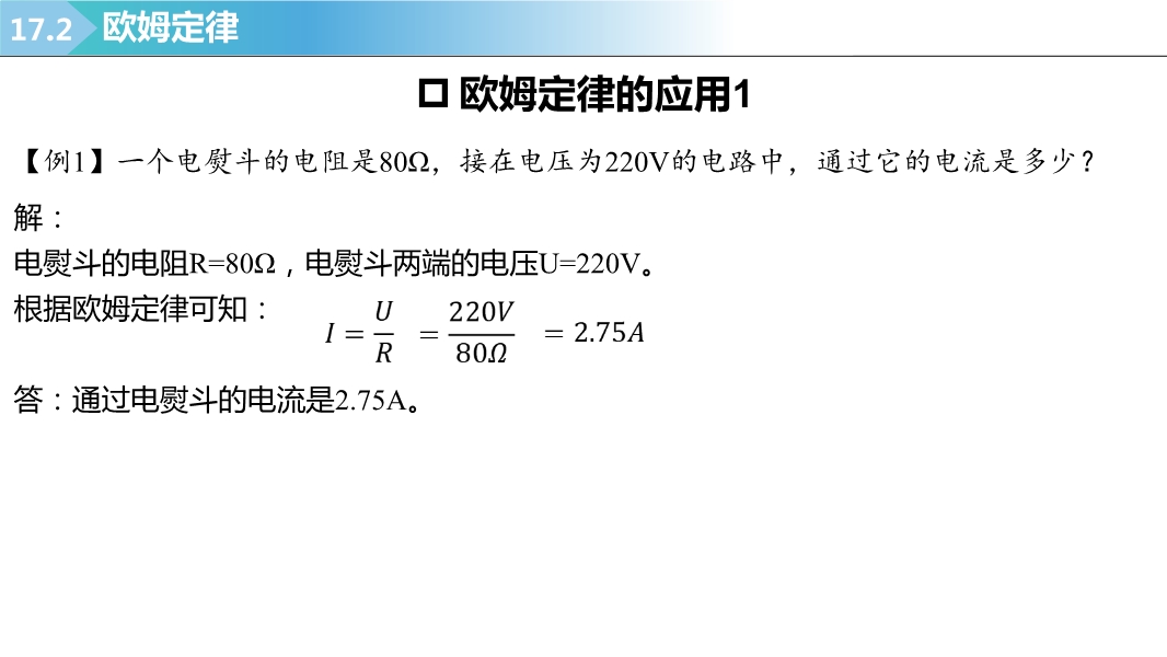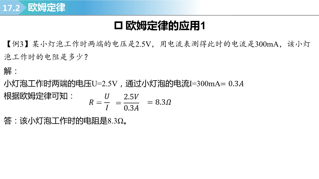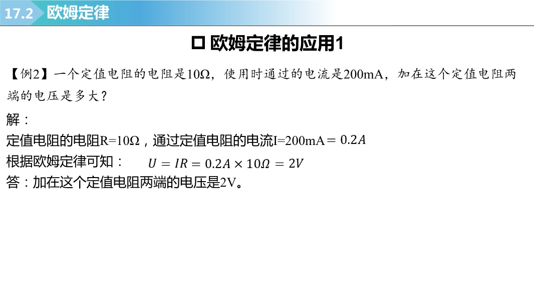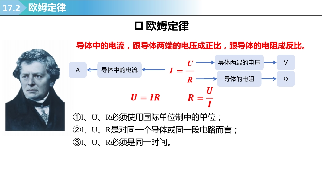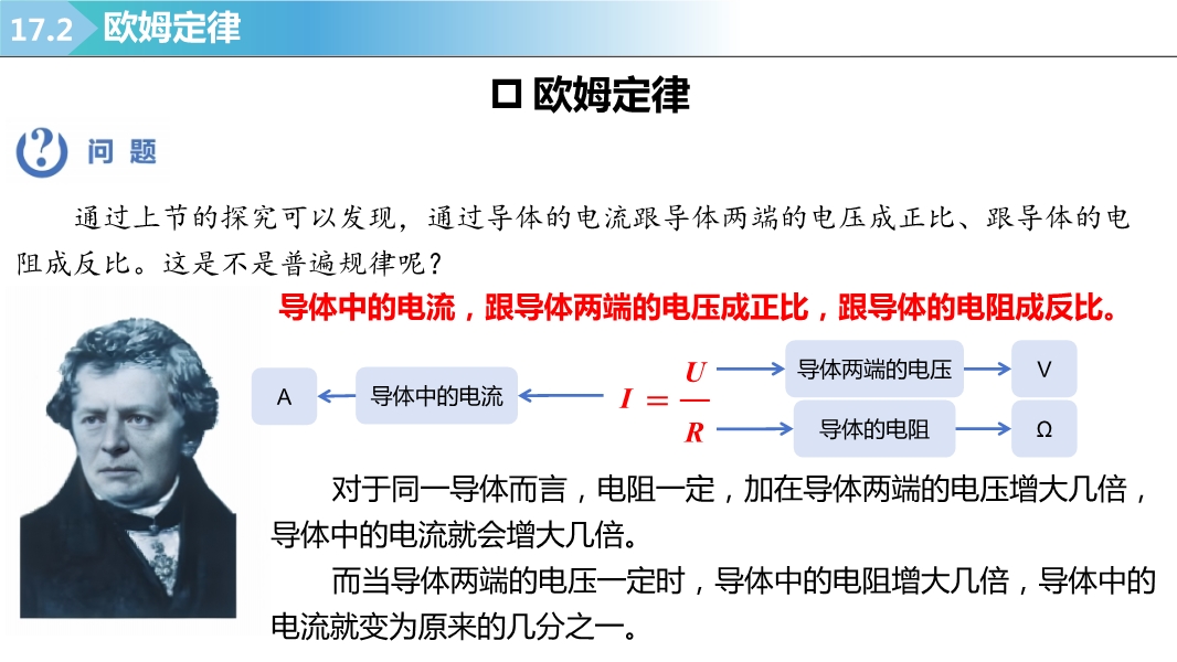 【内容简介】2025-2026学年新人教版九年级上学期物理课件:17.2欧姆定律