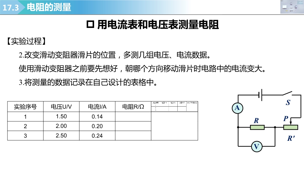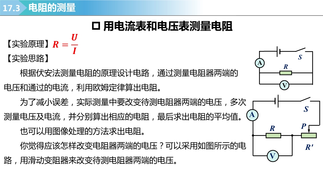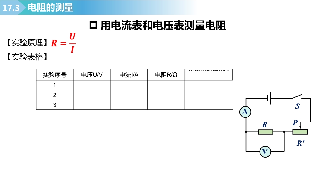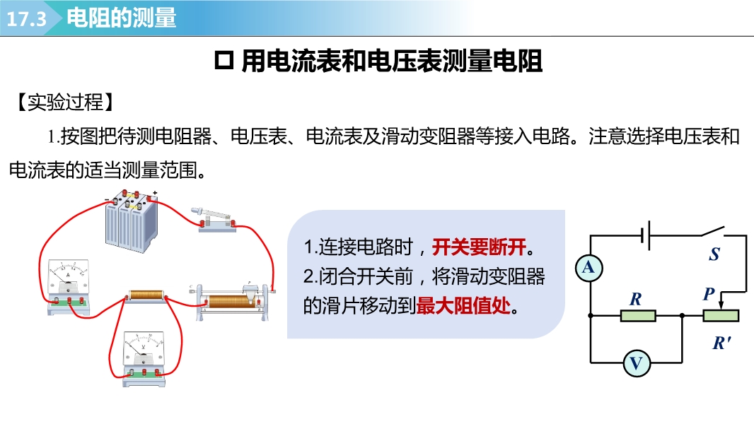 【内容简介】2025-2026学年新人教版九年级上学期物理课件:17.3电阻的测量