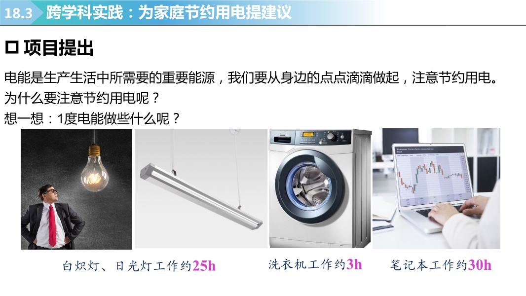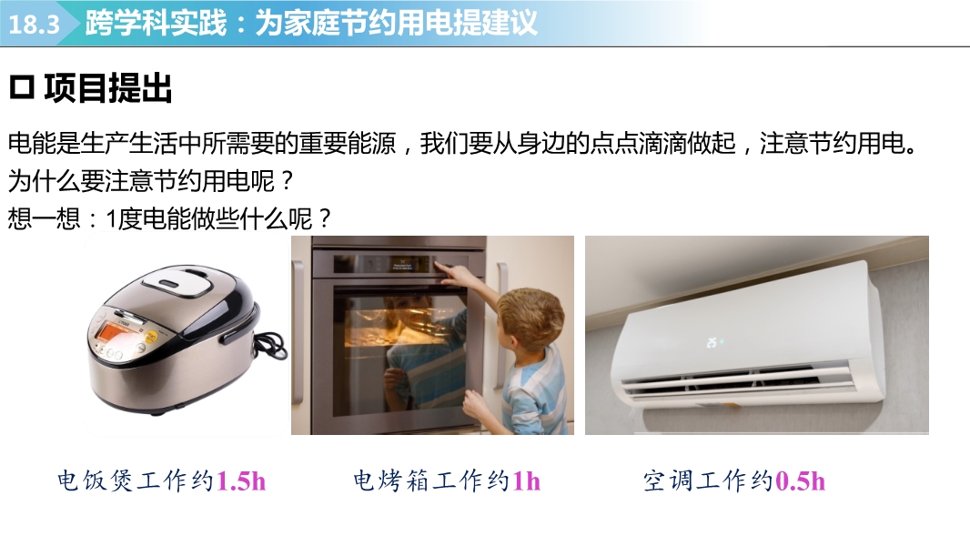 【内容简介】2025-2026学年新人教版九年级上学期物理课件:18.3跨学科实践:为家庭节约用电提建议