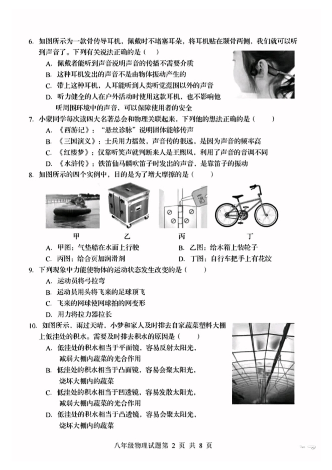 北京市顺义区2025-2026学年八年级上学期期末物理试卷(pdf版无答案)