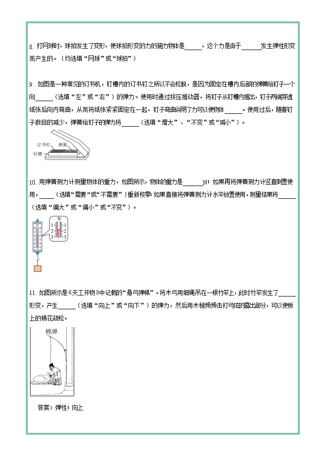 【内容简介】第七章 第二节 弹力—2025-2026学年人教版物理八年级下学期预习基础知识填空(附答案)