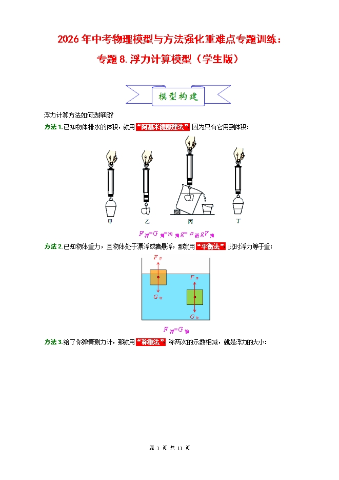 【内容简介】2026年中考物理模型与方法强化重难点专题训练:专题8.浮力计算模型(学生版和教师版)