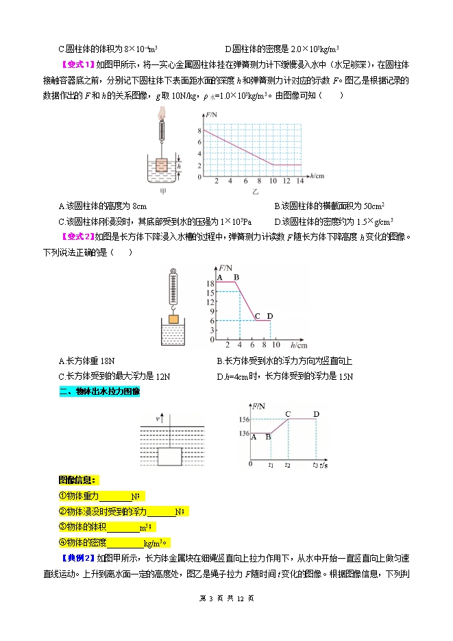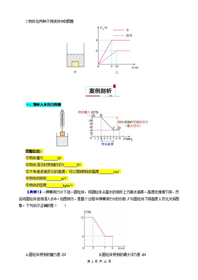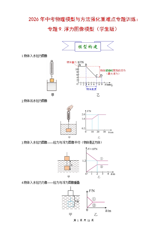 2026年中考物理模型与方法强化重难点专题训练:专题9.浮力图像模型(学生版和教师版)