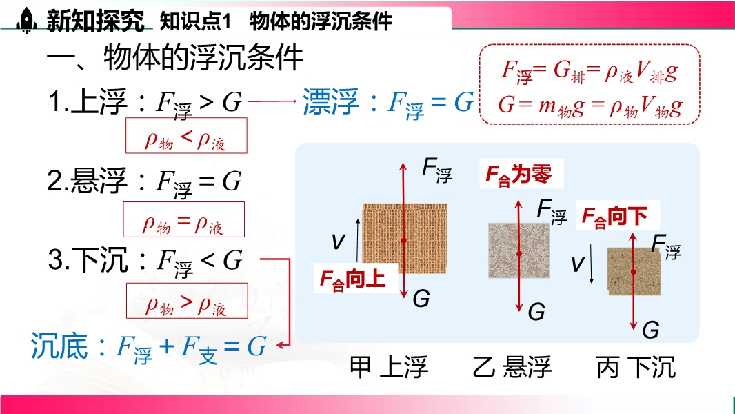 【内容简介】10.3 物体的浮沉条件及应用---2026春人教版物理八年级下学期配套教学课件