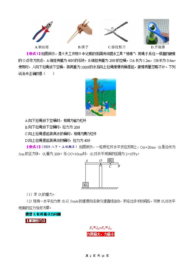 - 82026年中考物理模型与方法强化重难点专题训练:专题35.杠杆模型(二)(学生版和教师版)