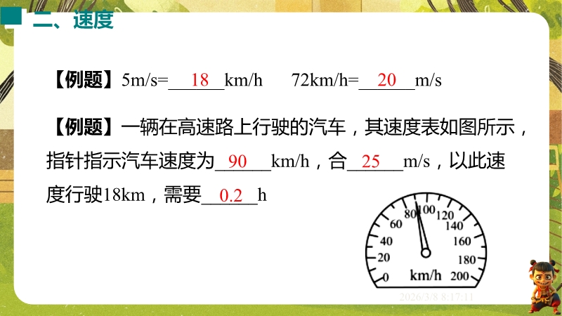 - 86第7章 7.2 运动的快慢 速度--2025-2026学年沪粤版物理八年级下册同步考点演练