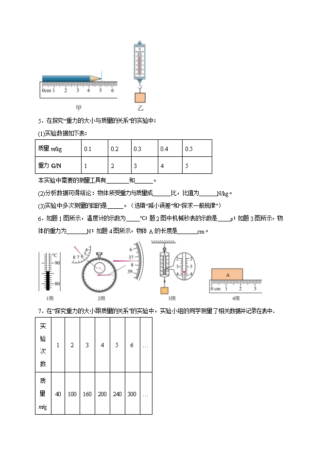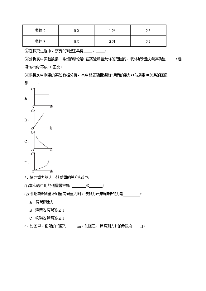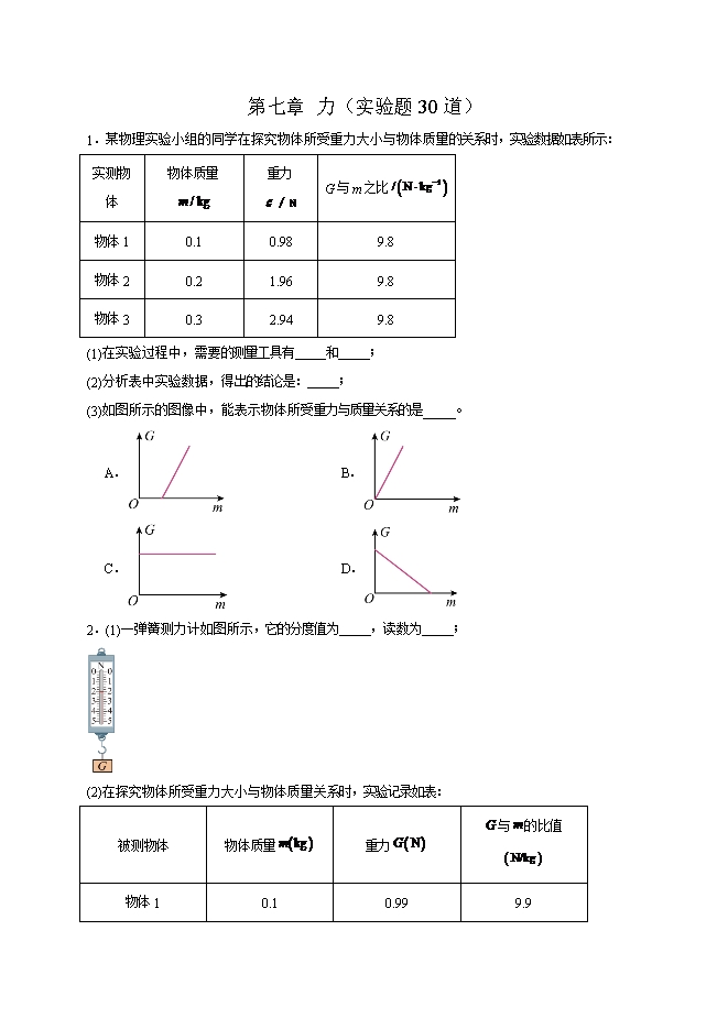 【内容简介】第七章 力(实验题30道)--2025-2026学年人教版八年级物理全册热点题型专练