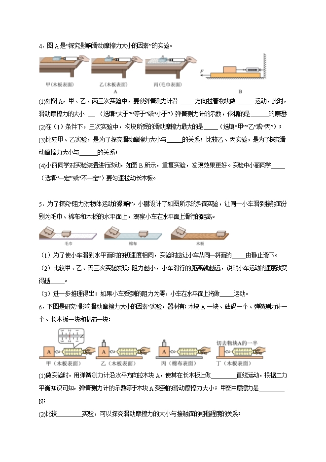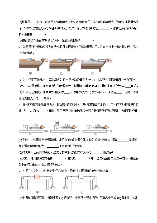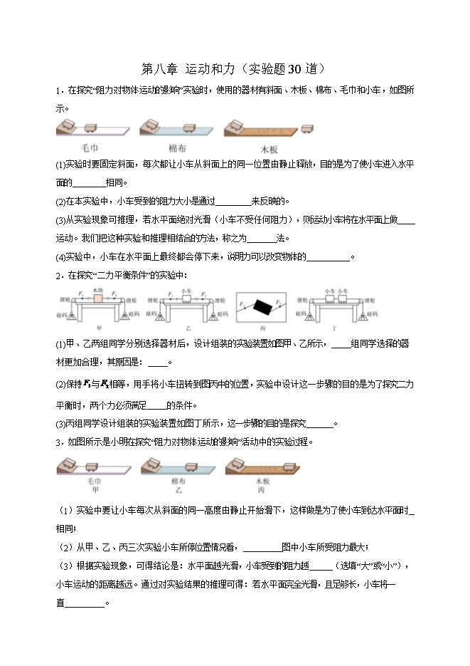 【内容简介】第八章 运动和力(实验题30道)--2025-2026学年人教版八年级物理全册热点题型专练
