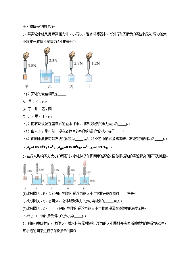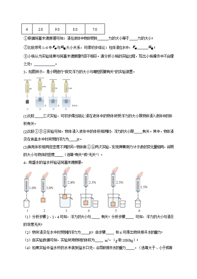 【内容简介】第十章 浮力(实验题30道)--2025-2026学年人教版八年级物理全册热点题型专练