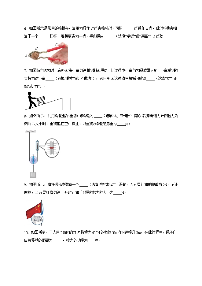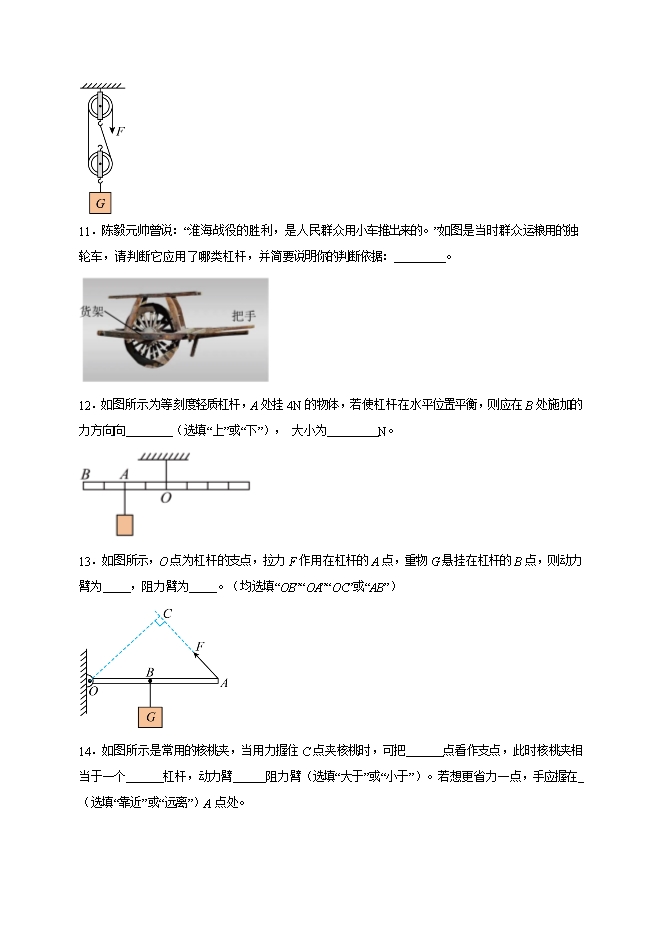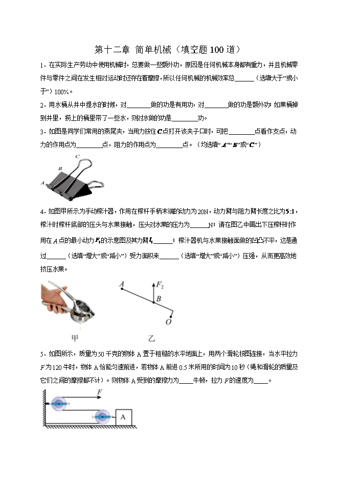 第十二章 简单机械(填空题100道)--2025-2026学年人教版八年级物理全册热点题型专练