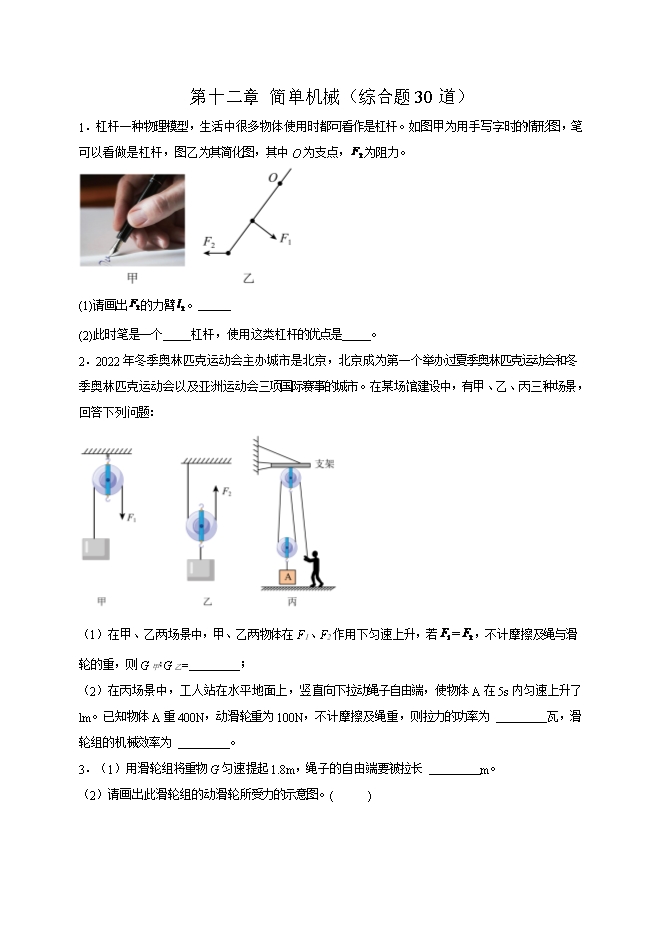 第十二章 简单机械(综合题30道)--2025-2026学年人教版八年级物理全册热点题型专练