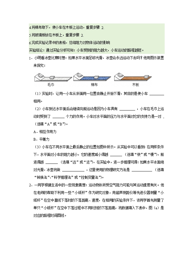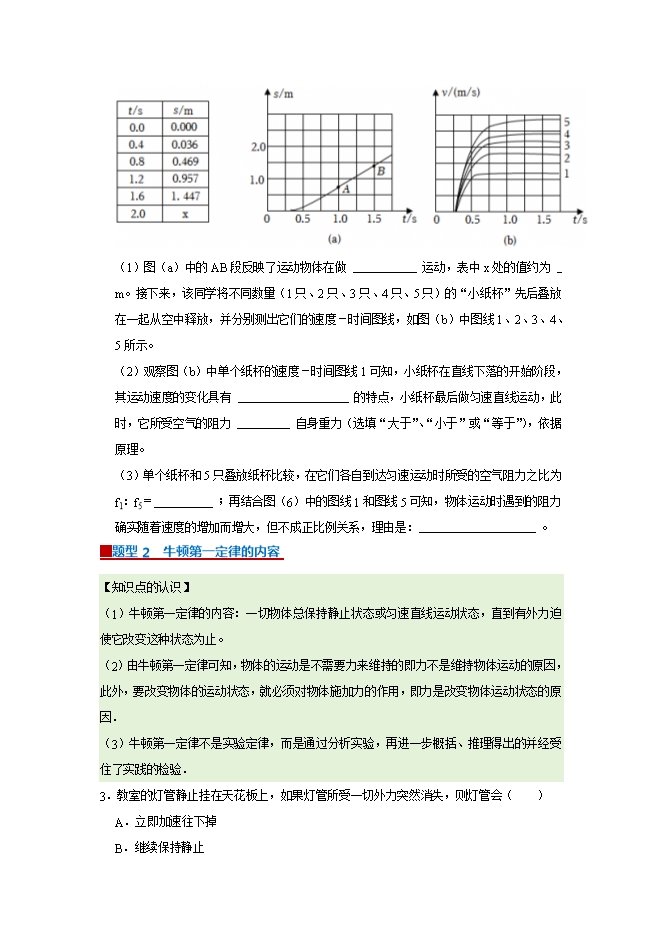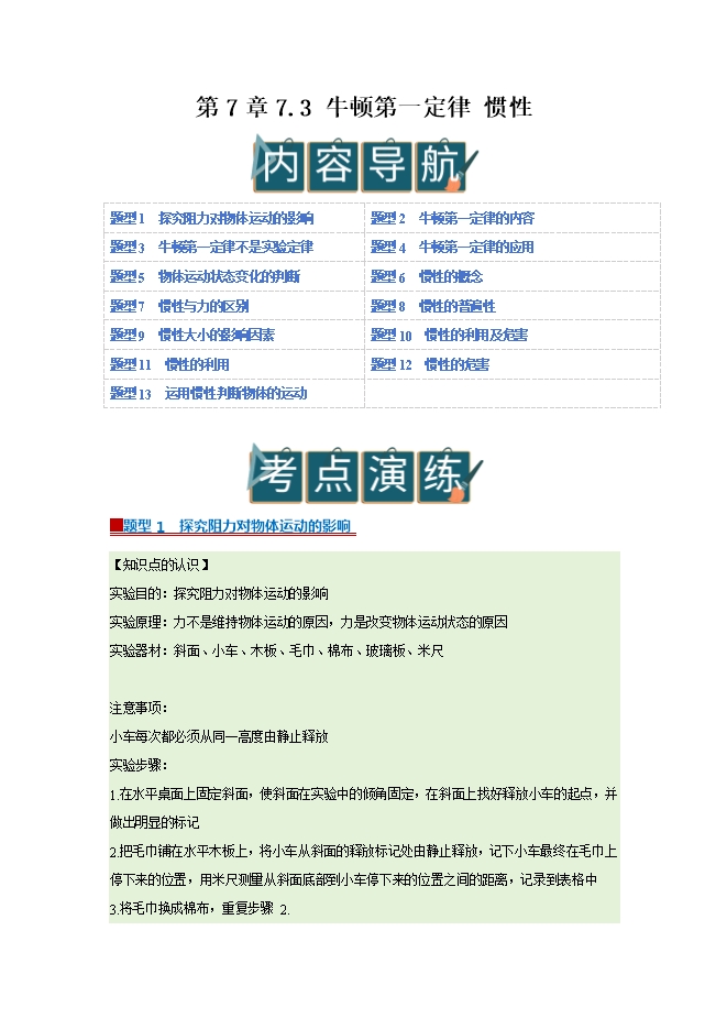 【内容简介】第7章 7.3 牛顿第一定律 惯性--2025-2026学年沪粤版物理八年级下册同步考点演练
