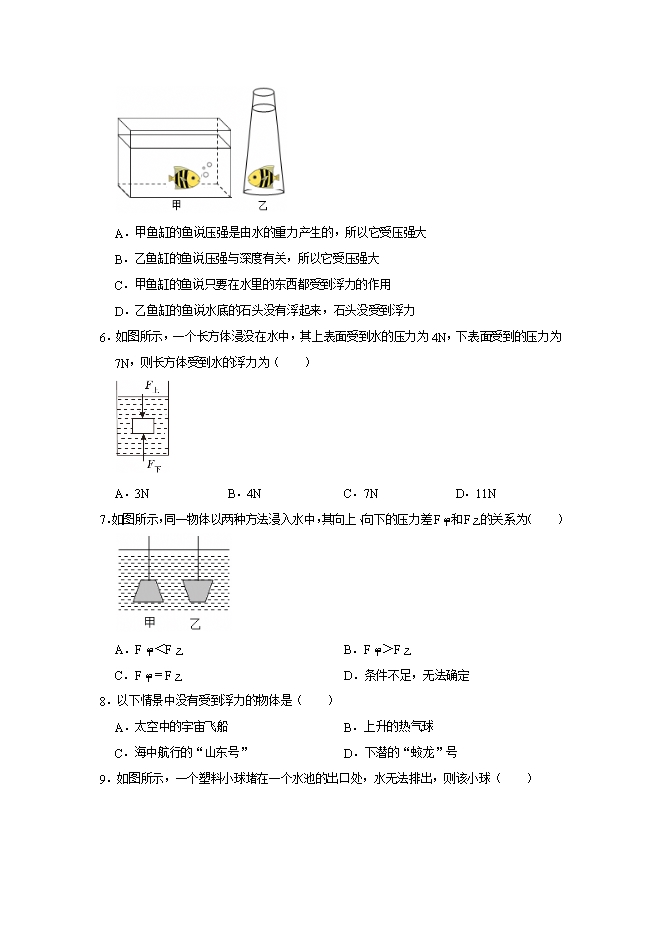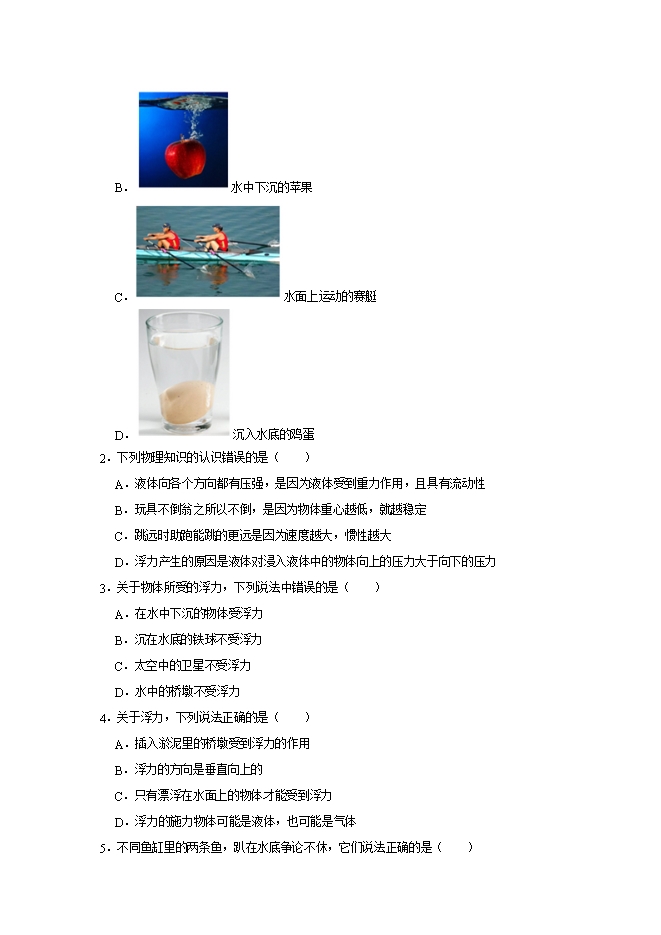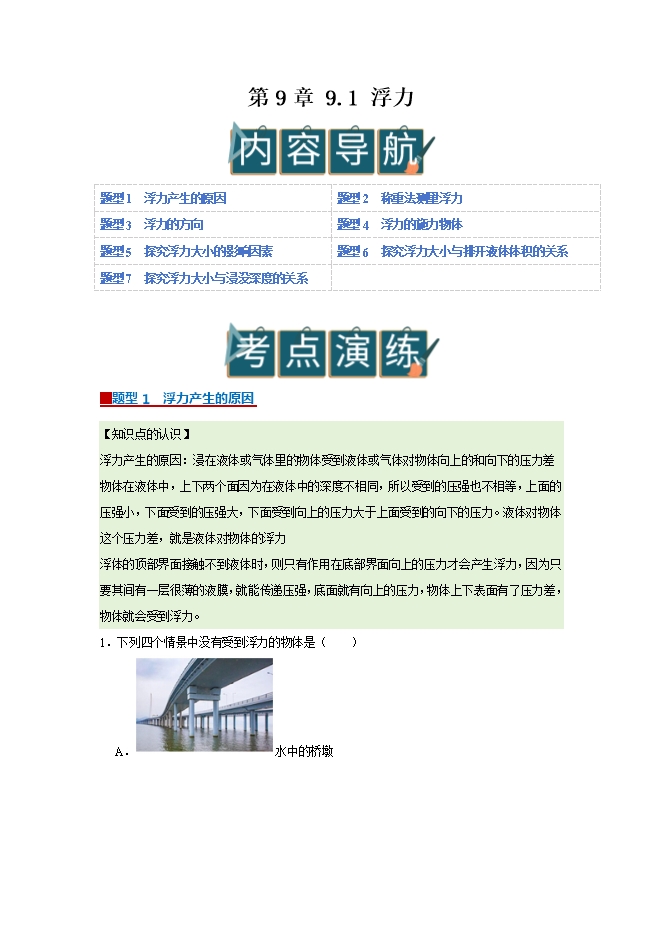 【内容简介】第9章 9.1 浮力--2025-2026学年沪粤版物理八年级下册同步考点演练